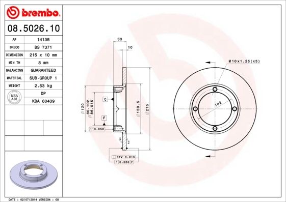 Brembo 2x Brake Discs Pair Solid Front 08.5026.10