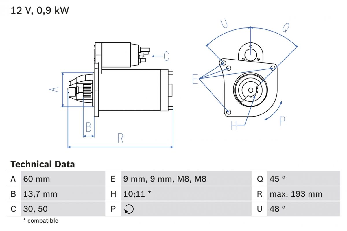 Bosch Starter Motor 0986021970